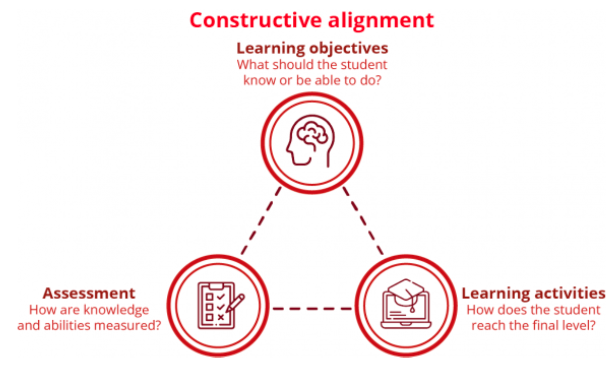 Afstemming tussen drie elementen: leerdoelen, leeractiviteiten en evaluatie. Wanneer deze niet congruent zijn, beïnvloedt dat het studiegedrag en de motivatie van studenten negatief.