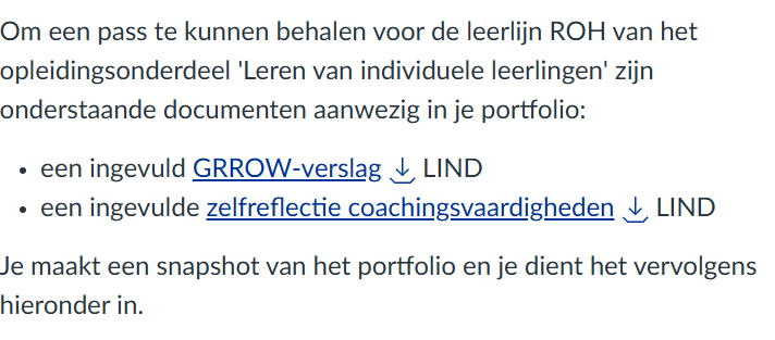 Om een pass te kunnen behalen voor de leerlijn ROH van het opleidingsonderdeel 'Leren van individuele leerlingen' moet je aan onderstaande voorwaarden voldoen: