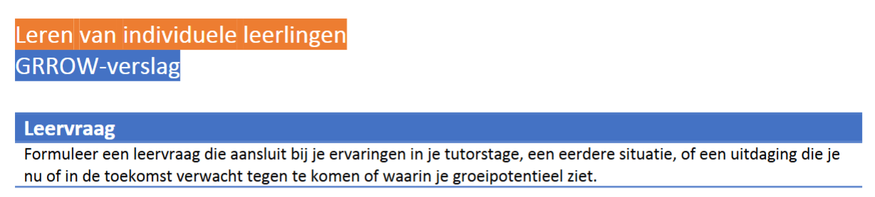 Formuleer een leervraag met betrekking tot je tutorstage of je lesvoorbereiding.