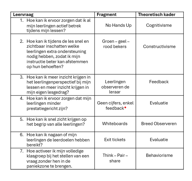 - Een leervraag, met bijbehorend videofragment, analyseren vanuit een theoretisch kader