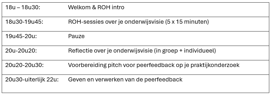- op een (zelf)kritische manier je onderwijsopinie presenteren, ter discussie stellen, concretiseren en bijsturen.