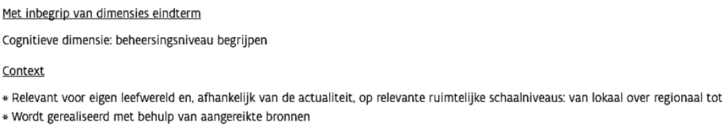 = omschrijving van wat de leerling/student/cursist moet kunnen als resultaat van het leerproces