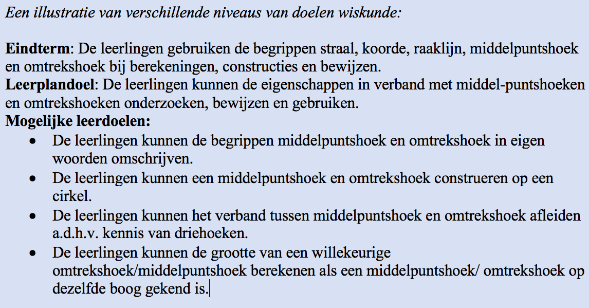 Altijd in termen van wat de leerling moet kunnen als resultaat van het leerproces