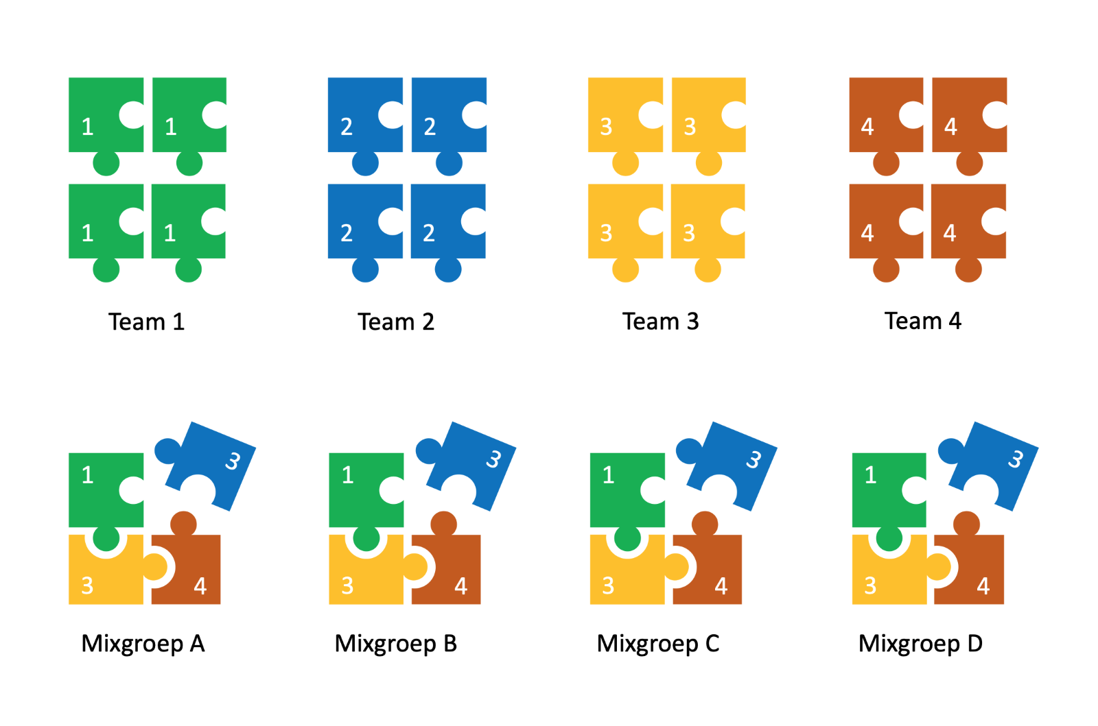 - Sociale interactie: Laat het geleerde gebruiken in nieuwe contexten in interactie met anderen (externaliseren).