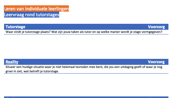 Actief aan de slag met concrete leervragen uit je stagepraktijk. Dit betekent: