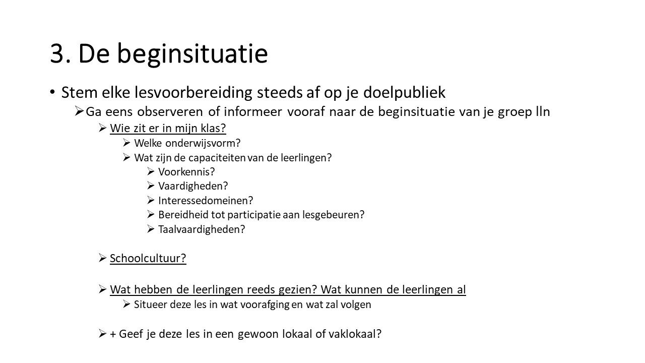 - De student kan de beginsituatie van de leerlingengroep benutten om het didactisch handelen af te stemmen op het leren van de leerlingen.