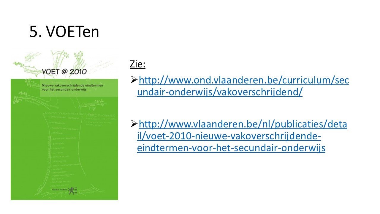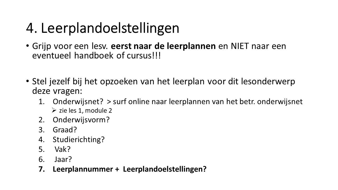 - De student kan doelstellingen kiezen op basis van eindtermen, curriculumdossiers en leerplannen.
